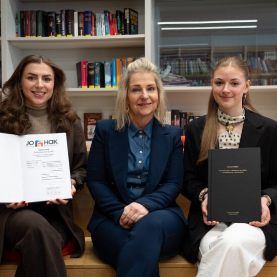 Wir freuen uns, dass du dich für die JO.HAK interessierst. Die HAK ist eine berufsbildende höhere Schule. Sie dient der kaufmännischen Berufsausbildung für alle Zweige der Wirtschaft und des öffentlichen Dienstes. Die Wirtschaft braucht DICH! Nach dem Besuch der HAK bist du für dein Berufsleben bestens gerüstet. Wirtschaftskompetenz, beste IT-Kenntnisse, mehrsprachige Kommunikation und fundierte Allgemeinbildung machen dich zu einer gefragten Mitarbeiterin/einem gefragten Mitarbeiter.