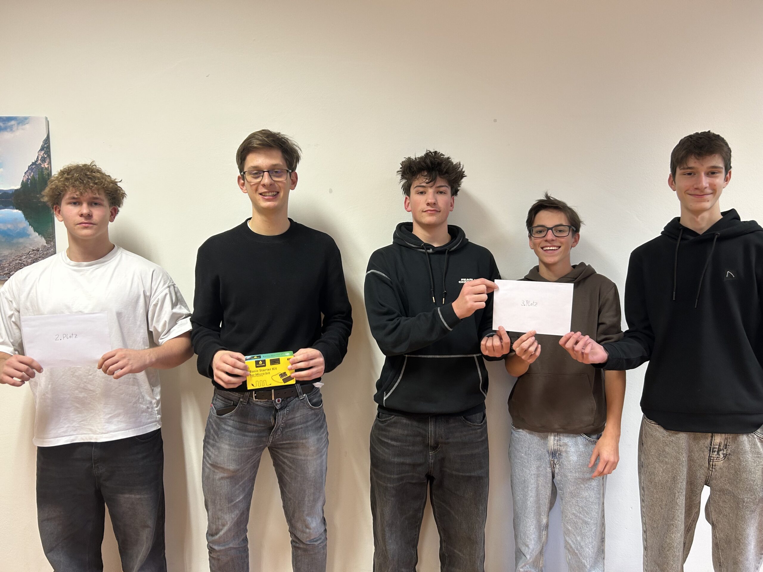Am 10.12. fand unser diesjähriges Schachturnier statt. Fünf packende Runden im Schweizer System ergaben zum Schluss folgendes Podest: 🥇 Sebastian Gruber - 4BHK 🥈 Alexander Karisch - 4BHK 🥉 ex aequo: Ole Ahrndt, Alem Fajkovic, Felix Höll - alle 2BHK Ein ❤️liches Dankeschön an